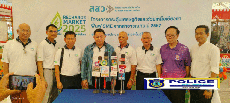 ((POLICE NEWS update PLUS))…”สสว. ร่วมกับสมาพันธ์เอสเอ็มอีไทย เดินหน้าสนับสนุนและฟื้นฟูเศรษฐกิจของผู้ประกอบการที่ได้รับผลกระทบจากอุทกภัยในช่วงปี 2567 จัดงานแสดงสินค้า Recharge Market 2025 ระหว่าง 13 -15 มิ.ย. 2568 ตั้งแต่เวลา 10.00 – 22.00 น. ณ ลานกิจกรรมตลาดเซฟวัน เมืองย่าโม คาดสร้างมูลค่าทางเศรษฐกิจ ไม่ต่ำกว่า 20 ล้านบาท