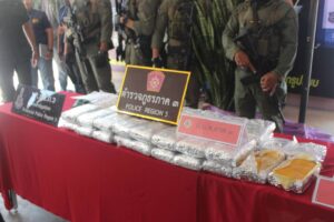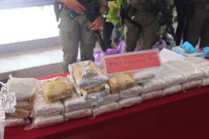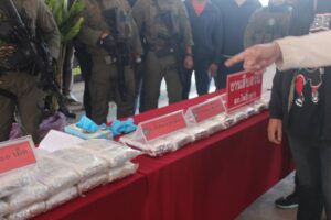 3.ยาบ้าจำนวน 34 แพค แพคละ 3 มัด(ประทับตราสัญลักษณ์ Y-1) มัดละ 2,000 เม็ด และยาบ้าจำนวน 1 มัด แต่ละแพคห่อด้วยถุงพลาสติกใส พันด้วยอลูมิเนียมฟอยล์ รวมยาบ้า 103 มัด (ประมาณ 206,000 เม็ด) รวมยาบ้าทั้งหมดประมาณ 400,000 เม็ด