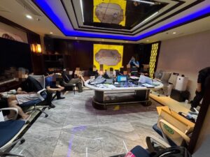 เมื่อชุดจับกุมเข้าไปที่ห้องหมายเลข 5555 ของชั้น 3 พบนักพนันเล่นอยู่มากกว่า 20 คน โดยแต่ละคนล้วนแล้วแต่เป็นชาวต่างชาติ สามารถจับกุมนักพนันทั้งหมด 12 คน แบ่งเป็นหญิง 2 ชาย 10 สัญชาติจีน 8 คน สิงคโปร์ 2 คน ฟิลิปปินส์ และอินเดียอย่างละ 1 คน รวมทั้งจับผู้ดูแลเป็นหญิงชาวไทย 1 คน ส่วนนักพนันที่เหลือมากกว่า 10 คน หลบหนีไปได้