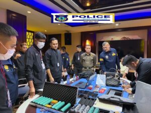 พร้อมของกลาง เงินสดสกุลไทย จำนวน 319,400 บาท,เงินสดสกุลประเทศสิงคโปร์ จำนวน 5,308 เซนต์,เงินสดสกุลประเทศจีน จำนวน 7,035 หยวน ,เงินสดสกุลประเทศฮ่องกง จำนวน 12,074 ดอลล่าฮ่องกง,เงินสดสกุลทวีปยุโรป จำนวน 100 ยูโร,เงินสดสกุลประเทศมาเก๋า จำนวน 70 หยวน , ชิฟพร้อมกระเป๋า จำนวน 5 ล้านบาท (อุปกรณ์แทนเงินสด) จำนวน 2 กระเป๋า,ไพ่ จำนวน 4 สำรับ,โต๊ะสำหรับเล่นโป๊กเกอร์ จำนวน 1 โต๊ะ