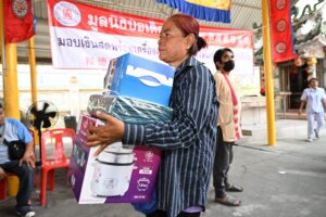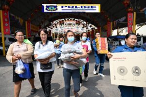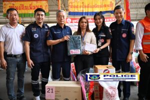 เมื่อวันศุกร์ที่ 21 กุมภาพันธ์ พ.ศ. 2568 มูลนิธิป่อเต็กตึ๊ง นำโดย นายวิชิต ชินวงศ์วรกุล รองประธานกรรมการ พร้อมด้วย นายชาญกิจ วิทยาวรากรณ์ กรรมการ นางศิริพร กระจ่างหล้า ผู้จัดการฝ่ายสังคมสงเคราะห์ และ นายรัชพร ประสงค์ทรัพย์ หัวหน้าแผนกสาธารณภัย นำทีมลงพื้นที่ให้ความช่วยเหลือผู้ประสบอัคคีภัยในพื้นที่อำเภอเมือง อำเภอกระทุ่มแบน และอำเภอบ้านแพ้ว จังหวัดสมุทรสาคร รวมจำนวน 23 ครอบครัว 67 คน โดยมอบเงินสดคนละ 3,500 บาท พร้อมมอบเครื่องอุปโภคบริโภครายครอบครัว 14 ชุด รายบุคคล 9 ชุด และมอบเงินสงเคราะห์ค่าฌาปนกิจให้แก่ญาติผู้เสียชีวิตจากเหตุการณ์ดังกล่าว รายละ 20,000 บาท รวมจำนวน 3 ราย รวมมูลค่าการช่วยเหลือทั้งสิ้น 343,000 บาท (สามแสนสี่หมื่นสามพันบาทถ้วน) โดยมี นายนริศ นิรามัยวงศ์ ผู้ว่าราชการจังหวัดสมุทรสาคร เป็นประธานในพิธี อาสาสมัครศิลปินมูลนิธิป่อเต็กตึ๊ง อาทิ นางสาวเบญญาภา จันใจ (ขิม) นายกวิน ชาตะวนิช (วิน) ร่วมในพิธี พร้อมด้วย มูลนิธิการกุศลสมุทรสาคร เป็นผู้ประสานงานและร่วมในพิธี ณ มูลนิธิการกุศลสมุทรสาคร อำเภอเมือง จังหวัดสมุทรสาคร