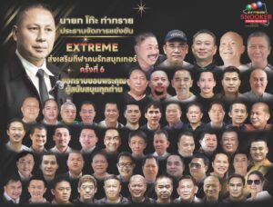 ณ Extreme Snooker Club ได้มีพิธีเปิดการแข่งขันเอ็กซ์สตรีมสนุกเกอร์ 6 แดง ส่งเสริมคนรักกีฬาสนุกเกอร์ ครั้งที่ 6 โดยจะมีนักกีฬากว่า 300 คนมาร่วมแข่งขัน เพื่อชิงเงินรางวัลรวมมูลค่า1,000,000 บาท