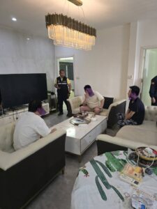 เจ้าหน้าที่ สืบสวน ตม.จว.ชลบุรี และ ตำรวจท่องเที่ยว จึงได้นำหมายค้นศาลจังหวัดพัทยา เข้าตรวจค้นจากการตรวจค้น พบคนจีนอยู่ในบ้านหลังดังกล่าว 5 คน กำลังนั่งทำงาน เป็นแอดมินรับแลกเงินให้ลูกค้าเว็บไซต์พนันออนไลน์อยู่ ตรวจพบ