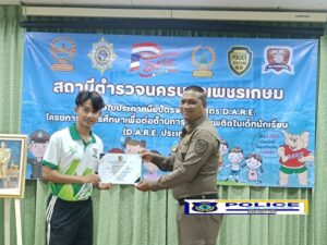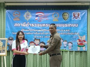ทำพิธีมอบใบประกาศนียบัตรให้กับนักเรียน D.A.R.E. ที่จบหลักสูตร ตามโครงการการศึกษาเพื่อต่อต้านยาเสพติดในเด็กนักเรียน (D.A.R.E.ประเทศไทย) จำนวน 72 คน