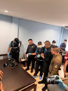 เมื่อวันที่6 เมษายน 2568 พล.ต.ต.ธวัชชัย นาคฤทธิ์ รองผู้บัญชาการตำรวจภูธรภาค 1 (รอง ผบช.ภ.1) และโ ฆษก บช.ภ.1 และ พล.ต.ต.ภัคพงศ์ สายอุบล ผบก.อก.ภ.1 ร่วมกันเปิดเผยว่า เมื่อวันที่ 4 เม.ย.68 ภายใต้การอำนวยการสั่งการของ พล.ต.ท.สุรพล เปรมบุตร ผบช.ภ.1 , พล.ต.ต.ไพโรจน์ สุขรวยธนโชติ รอง ผบช.ภ.1 ชุดตรวจค้นนำโดย พล.ต.ต.วรชาติ แสนคำ ผบก.สส.ภ.1 , พ.ต.อ.ประธาน นันทกอบกุล รอง ผบก.สส.ภ.1 , พ.ต.อ.พูนสุข เตชะประเสริฐพร ผกก.สส.1 , พ.ต.อ.นัฏฐพงศ์ ศรีเพ็ญประภา ผกก.สส.2 , พ.ต.อ.ชินโชติ วัฒนธนพ ผกก.สส.3 พร้อมตำรวจ บก.สส.ภ.1 , ตำรวจพิสูจน์หลักฐาน และตำรวจ สน.ท่าข้าม นำโดย พ.ต.อ.วิชานนท์ เอกตาแสง ผกก.สน.ท่าข้าม นำหมายค้นศาลอาญาธนบุรี ลงวันที่ 4 เมษายน 2568 เข้าทำการตรวจค้นห้องพักชั้น 3 แมนชั่นแห่งหนึ่งในซอยเทียนทะเล 6 แขวงแสมดำ เขตบางขุนเทียน กทม.