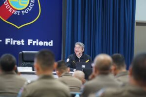 ผู้บังคับบัญชาระดับสูงในสังกัด พร้อมด้วยข้าราชการตำรวจจากสถานีตำรวจท่องเที่ยวทั่วประเทศ เข้าร่วมรับฟังและแลกเปลี่ยนเรียนรู้ เพื่อยกระดับการใช้เทคโนโลยีในการดูแลความปลอดภัยนักท่องเที่ยวอย่างมีประสิทธิภาพ