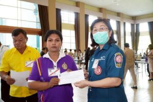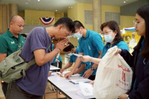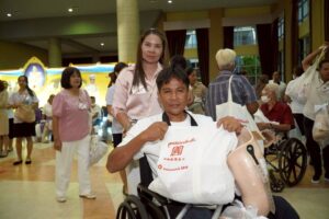 และนางสาวดวงชุตา ติยะพจนพรกุล ผู้ช่วยผู้จัดการฝ่ายสังคมสงเคราะห์ นำทีมแผนกส่งเสริมการศึกษาและอาชีพ ลงพื้นที่ มอบค่าพาหนะ พร้อมด้วยเครื่องอุปโภคบริโภค ประกอบด้วย ข้าวสำเร็จรูป อาหารสำเร็จรูป ขนม ยาสีฟัน แปรงสีฟัน ครีมอาบน้ำ โลชั่นทากันยุง ทิชชูเปียก ทิชชูแห้ง และถุงขยะ บรรจุถุงผ้าดิบ ให้แก่ผู้รับขาเทียม และช่างอาสาสมัคร ที่เข้าร่วมโครงการออกหน่วยทำขาเทียมพระราชทานเคลื่อนที่ ครั้งที่ 174 รวมจำนวน 250 คน รวมงบประมาณเป็นเงินทั้งสิ้น 259,312.50 บาท (สองแสนห้าหมื่นเก้าพันสามร้อยสิบสองบาทห้าสิบสตางค์)