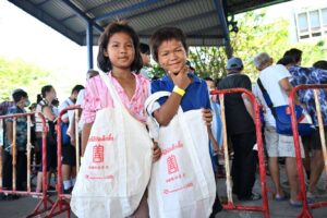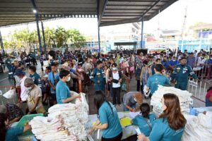 และมหาวิทยาลัยหัวเฉียวเฉลิมพระเกียรติ อาทิ การตรวจรักษาโรคทั่วไป แจกจ่ายยา ตรวจและแจกแว่นสายตา ตัดผม การเจาะเลือด เพื่อตรวจการทำงานของตับ ไต ไขมันในเส้นเลือด น้ำตาลในเลือด และเก๊าท์เบื้องต้น ฯลฯ รวมทั้งจัดบูธแจกจ่ายอาหาร เครื่องดื่ม และขนม ให้กับชาวสมุทรสาคร