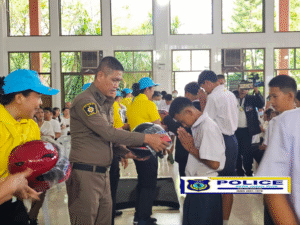 เมื่อวันที่ 13 มิ.ย.2568 เวลา 08.30 น. ณ วัดป่าทรัพย์ทวีธรรมราม ต.วังหมี อ.วังน้ำเขียว จ.นครราชสีมา นายชัยวัฒน์ ชื่นโกสุม ผู้ว่าราชการจังหวัดนครราชสีมา เป็นประธานการมอบหมวกนิรภัยให้กับประชาชน โดยมี พล.ต.ต.ไพโรจน์ ขุนหมื่นผู้บังคับการตำรวจภูธรจังหวัดนครราชสีมา และนักเรียน เข้าร่วม