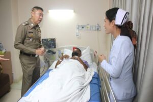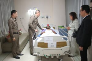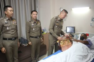 ได้เยี่ยมบำรุงขวัญและให้กำลังใจ แก่ ส.ต.อ.อัศนัย เรืองสาย ผบ.หมู่ (สส.) สภ.ปากคลองรังสิต กับพวก เจ้าหน้าที่ชุดสืบสวน สภ.ปากคลองรังสิต ซึ่งได้รับบาดเจ็บจากการปฏิบัติหน้าที่ในครั้งนี้