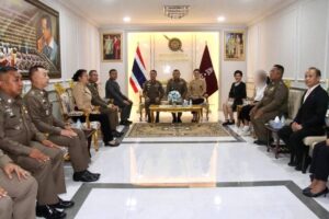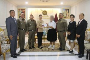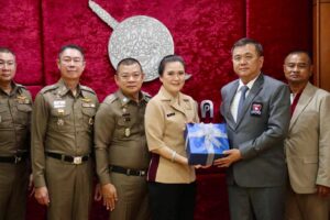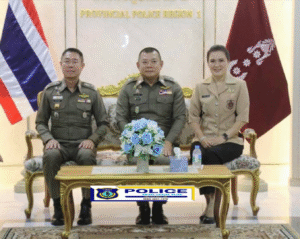 พล.ต.ต.ภัคพงศ์ สายอุบล ผบก.อก.ภ.1, คณะแม่บ้านตำรวจภูธรภาค 1 และเจ้าหน้าที่ที่เกี่ยวข้องเข้าร่วมให้การต้อนรับ ณ ตำรวจภูธรภาค 1