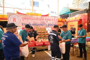 และเช้าวันนี้ (วันพฤหัสบดีที่ 24 กรกฎาคม พ.ศ. 2568) นายอรัณย์ โตทวด ผู้จัดการใหญ่มูลนิธิฯ นำทีมเจ้าหน้าที่ อาสาสมัคร และจิตอาสา “รวมพลัง ส่งต่อธารน้ำใจ สู้ภัยน้ำท่วม” เร่งบรรจุเครื่องอุปโภคบริโภค รวมทั้งสิ่งของที่ผู้มีจิตศรัทธาร่วมบริจาค อาทิ อาหารสำเร็จรูป ไฟฉาย ผ้าอนามัย ถุงขยะดำ ทิชชู่เปียก ทิชชูแห้ง สบู่เหลว ยากันยุง แปรงสีฟัน ยาสีฟัน ชุดยาสามัญประจำบ้าน บรรจุถุงมูลนิธิป่อเต็กตึ๊ง จัดเป็น “ถุงยังชีพฉุกเฉิน” กว่าหนึ่งพันชุด และข้าวสารอีกจำนวนหนึ่ง นำส่งสมทบให้ทีมบรรเทาสาธารณภัยนำออกแจกจ่ายให้กับผู้ประสบภัยในพื้นที่ ณ บริเวณลานสำนักงานมูลนิธิป่อเต็กตึ๊ง พลับพลาไชย กรุงเทพฯ