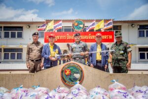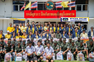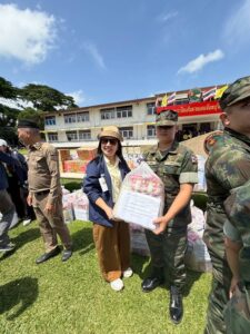 ใน สถานการณ์ความตึงเครียด แนวชายแดนไทย-กัมพูชา พร้อมสร้างประโยชน์เพื่อสังคม โดยการมอบถุงยังชีพให้แก่ชาวบ้านที่ขาดโอกาส และมอบอุปกรณ์การศึกษาการกีฬา ให้แก่นักเรียน ในพื้นที่ จ.จันทบุรี – ตราด ระหว่างวันที่ 25-26 กรกฎาคม 2568