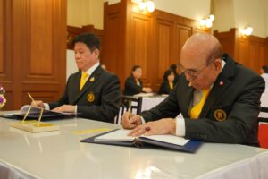 พร้อมด้วยคณะกรรมการ นำคณะผู้บริหารมูลนิธิป่อเต็กตึ๊ง และหน่วยงานในเครือ นำแจกันดอกไม้ทูลเกล้าทูลกระหม่อมถวายหน้าพระบรมฉายาลักษณ์ และลงนามถวายพระพรชัยมงคล พระบาทสมเด็จพระเจ้าอยู่หัว