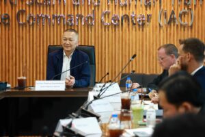 ประชุมหารือเตรียมความพร้อมในการดำเนินการร่วมกันในวอร์รูม IAC โดยมี พล.ต.ต.พงษ์สยาม มีขันทอง รองผู้บัญชาการตำรวจท่องเที่ยว/รอง ผบ.เหตุการณ์ (2) ร่วมกับผู้แทนทูตนานาประเทศ และหน่วยงานที่เกี่ยวข้องร่วมประชุม ได้แก่ ผู้แทนทูตจากประเทศ บังกลาเทศ ญี่ปุ่น ลาว เมียนมา แอฟริกาใต้ เกาหลีใต้ สหราชอาณาจักร สหรัฐอเมริกา เวียดนาม สิงคโปร์ และ UNODC ณ ห้องประชุมวอร์รูม ศูนย์บริหารเหตุการณ์แก๊งคอลเซ็นเตอร์และการค้ามนุษย์นานาชาติ