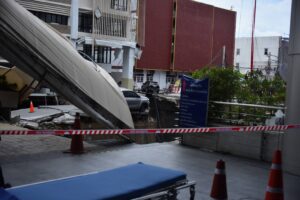 สำหรับตัวอาคารโรงพยาบาลวชิระไม่ได้รับผลกระทบ เพราะตอนนี้การทรุดตัวหยุดและคงที่แล้ว ในอีกฝั่งถนนจะเป็นที่ตั้งของสถานีรถไฟฟ้าใต้ดินอยู่แล้ว ซึ่งมีโครงสร้างคอนกรีตรองรับดินสไลด์อยู่แล้ว “แต่สิ่งที่น่าเป็นห่วงตอนนี้คืออาคารของสถานีตำรวจนครบาลสามเสน ซึ่งเป็นอาคาร 5-6 ชั้น เสาเข็มลงไป 21 เมตร และมีแรงของดิน ส่งผลให้เข็มขาดไป 2-3 ต้น ขณะนี้ได้ทำการอพยพเจ้าหน้าที่ออกจากอาคารเป็นที่เรียบร้อยแล้ว รวมถึงอพยพประชาชนที่พักอาศัยอาคารห้องแถวใกล้เคียง ดังนั้น ด้านการรักษาชีวิตของประชาชนควบคุมได้แล้ว ไม่มีผู้ได้รับบาดเจ็บหรือเสียชีวิต