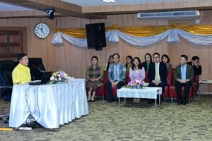 ”ผมเชื่อว่าทุกคนในวันนี้ล้วนมีความฝัน เราต้องฝันให้ไกลไปให้ถึง ในวันนี้ทุกท่านทำตามความฝันคือการสอบบรรจุรับราชการได้แล้ว ฝันต่อไปที่ต้องทำให้เป็นจริงคือการทำงานเพื่อประชาชน และเติบโตตามตำแหน่งหน้าที่ ซึ่งขอให้ทุกท่านได้มุ่งมั่นตั้งใจทำงานตามที่ผู้บังคับบัญชามอบหมายทั้งงานประจำ และงานที่นอกเหนือจากงานประจำให้รวดเร็วและมีคุณภาพ หนักเอาเบาสู้ พร้อมอุทิศตนเพื่อประโยชน์ส่วนรวมมากกว่าส่วนตน เพราะงานทุกอย่างที่เราได้รับมอบหมายไม่ว่าหนักหรือเบาจะเข้ามาท้าทายให้เกิดการเรียนรู้เติบโตไปเป็นผู้ใหญ่ที่ดีเสมอและเป็นที่ไว้วางใจของผู้บังคับบัญชาเสมอ สิ่งสำคัญมากที่สุด คือ “การมีทัศนคติที่ดีไม่ย่อท้อต่อความยากลำบาก และการสร้างเครือข่ายเพื่อนร่วมงาน” ซึ่งทั้งสองสิ่งนี้จะเป็นลมใต้ปีกและเป็นเกราะกำบัง ช่วยให้ข้ามผ่านไปสู่ความสำเร็จได้ในที่สุด“ นายอรรษิษฐ์ กล่าว