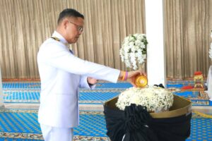 จังหวัดศรีสะเกษ นายอนุพงศ์ สุขสมนิตย์ ผู้ว่าราชการจังหวัดศรีสะเกษ นำพสกนิกรทุกหมู่เหล่า เข้าถวายน้ำสรงพระบรมศพ หน้าพระฉายาลักษณ์ สมเด็จพระนางเจ้าสิริกิติ์ พระบรมราชินีนาถ พระบรมราชชนนีพันปีหลวง ณ อาคารอารยธรรม 3 แผ่นดิน ศาลากลางจังหวัดศรีสะเกษ อ.เมืองศรีสะเกษ