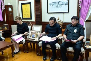 โดยมี นางวรสุดา รัตนสุคนธ์ ผู้ช่วยปลัดกระทรวงมหาดไทย รักษาการในตำแหน่งที่ปรึกษาด้านการบริหารงานจังหวัดแบบบูรณาการ พร้อมด้วยหัวหน้าหน่วยงานในสังกัดสำนักงานปลัดกระทรวงมหาดไทย และกรมการปกครอง ร่วมหารือ