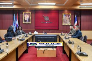 เมื่อวันที่ 26 พฤศจิกายน2568 เวลา 13.00 น. พ.ต.อ.ชินกร อัศวภูมิ ผกก.ตม.จว.ตาก มอบหมายให้ พ.ต.ท.นวสินธุ์ ล่ำสัน รอง ผกก.ตม.จว.ตาก และ พ.ต.ท.สมภพ หอมนาน สว.ตม.จว.ตาก ให้การต้อนรับพร้อมให้ข้อมูลที่เกี่ยวข้องแก่ คุณคีเลีย คัมมินส์ กงสุลใหญ่แห่งสหรัฐอเมริกา ประจำจังหวัดเชียงใหม่ พร้อมคณะในโอกาสเดินทางมาเข้าพบเพื่อแลกเปลี่ยนข้อมูลและความคิดเห็นเกี่ยวกับสถานการณ์ในพื้นที่ชายแดน ณ ห้องประชุม ศปก.ตม.จว.ตาก ต.ท่าสายลวด อ.แม่สอด จว.ตาก