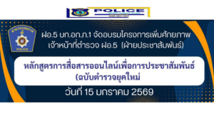 โดยมี พ.ต.อ.พอพล อุทัยภพ ผกก.ฝอ.5 บก.อก.ภ.1 พร้อมข้าราชการตำรวจในสังกัด ฝอ.5 บก.อก.ภ.1 ร่วมพิธีฯ และเข้ารับการอบรม ณ ห้องประชุมเอราวัณ ชั้น 3 อาคาร ภ.1