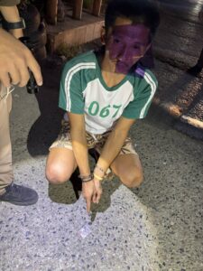 พฤติการณ์และรายละเอียดเกี่ยวกับการจับกุม วันนี้ ( 15 กุมภาพันธ์ 2569 เวลาประมาณ 03.00 น.) ตามวันเวลาดังกล่าวข้างต้น เจ้าพนักงานตำรวจชุดจับกุมได้ออกตรวจพื้นที่ตามปกติพบ นายธีรพงษ์ สืบชมภู ( ทราบชื่อ-สกุลภายหลัง ) กำลังขับขี่รถจักรยานยนต์ ยี่ห้อ ฮอนด้า รุ่น สกุ๊ปปี้ ไอ สีแดง คันหมายเลขทะเบียน 7ขท 9165กรุงเทพมหานคร มาถึงบริเวณหน้าโรงเรียนหนองใหญ่ เมื่อพบเจ้าหน้าที่ตำรวจ ได้แสดงอาการพิรุธต้องสงสัย ขับรถจักยานยนต์หลบหนี เข้าไปบริเวณถนนทางเข้าหน้าหมู่มั่งมี ซิตี้ เขตบางแค แขวงบางแค กรุงเทพฯ และโยนสิ่งของบางอย่างทิ้ง คล้ายมีสิ่งของผิดกฎหมาย เจ้าพนักงานตำรวจจึงติดตามไปและเรียกให้หยุดรถ จนมาถึงบริเวณแยกหนองใหญ่ จึงเรียกให้หยุดรถ เมื่อหยุดรถแล้ว เจ้าพนักงานตำรวจจึงแจ้งความประสงค์ขอตรวจค้น ในขณะตรวจค้นมีไฟส่องสว่างจากเสาไฟฟ้าและไฟฉายจากเจ้าหน้าที่ตำรวจส่วนเจ้าหน้าที่ตำรวจที่เหลือยืนดูสังเกตการณ์ ในขณะตรวจค้น โดยมี จ.ส.ต.สรศักดิ์ สีสาลี เป็นผู้ตรวจค้น ผลการตรวจค้นไม่พบสิ่งผิดกฎหมาย แต่นายธีรพงษ์ฯ ยังมีท่าทีพิรุธต้องสงสัย อาการคล้ายคนเมายาเสพติด เจ้าหน้าที่ตำรวจจึงได้สอบถามเกี่ยวกับการใช้ยาเสพติด นายธีรพงษ์ ฯ ยอมรับว่าได้เสพยาบ้ามาก่อนหน้านั้น เจ้าหน้าที่ตำรวจจึงได้สอบถามเกี่ยวกับยาเสพติด (ยาบ้า) นายนายธีรพงษ์ ฯ รับว่าได้ซื้อยามาจากชายไม่ทราบชื่อ (ไม่ทราบชื่อนามสกุลจริง) แถวบริเวณหน้าโรงเรียนหนองใหญ่ จำนวน 3 เม็ด ในราคา 150 บาท เพื่อจะนำไปเสพกับเพื่อนที่ห้องพัก