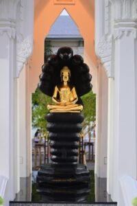 ที่ได้รับแรงบันดาลใจอันทรงคุณค่ามาจากพระนาคปรกเก้าเศียรศรีสัชนาลัย วัดพระธาตุเจ็ดแถว จังหวัดสุโขทัย นำมาผสมผสานเข้ากับเอกลักษณ์ของยุคสมัยรัตนโกสินทร์ได้อย่างลงตัว ลักษณะเด่นขององค์พระ เป็นพุทธปฏิมากรรมร่วมสมัยที่หล่อแยกเป็น 2 ส่วน คือ ส่วนองค์พระพุทธรูป และส่วนฐานรองรับ อันประกอบด้วย ขนดนาคซ้อนเรียงขึ้นเป็นฐาน 7 ชั้น โดยมี “พญามุจลินทร์” แผ่พังพานขึ้นเป็น 9 เศียร หรือ “มหานวะนาค” เพื่อเป็นพุทธบัลลังก์ถวายการอารักขาแด่องค์สมเด็จพระสัมมาสัมพุทธเจ้า ให้ทรงปลอดจากเภทภัยภยันตรายและหมู่มารที่มาผจญ รวมถึงคุ้มแดดคุ้มฝนให้ทรงสำราญพระวรกาย ตามตำนานพุทธประวัติที่เล่าขานสืบต่อกันมา