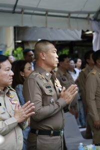 โดยมี พล.ต.ท.กฤษฎา กาญจนอลงกรณ์ ผู้ช่วย ผบ.ตร., พล.ต.ท.สยาม บุญสม ผบช.น., พล.ต.ต.อำนาจ ไตรพจน์ รอง ผบช.น., พล.ต.ต.ชัยกฤต โพธิ์อ๊ะ ผบก.น.6, รอง ผบก.น.1, 6 และเจ้าหน้าที่หน่วยงานที่เกี่ยวข้อง เข้าร่วมพิธี ณ ศาลปู่ดำ – ตราแผ่นดิน สน.พระราชวัง แขวงพระบรมมหาราชวัง เขตพระนคร กรุงเทพมหานคร