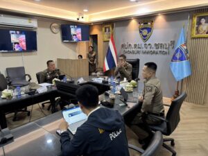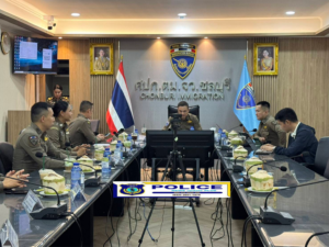 สถานที่ ณ ห้องประชุม ศปก.ตม.จว.ชลบุรี ต.หนองปรือ อ.บางละมุง จว.ชลบุรี