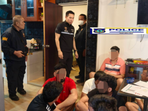 วันที่ 20 เม.ย.2569 พ.ต.อ.นภัสพงษ์ โฆษิตสุริยมณี ผกก.ตม.จว.ชลบุรี เปิดเผยว่า ได้สั่งการให้ พ.ต.ท.กวิณวัชร์ อารยะสุริวงศ์ รอง ผกก.ตม.จว.ชลบุรี และว่าที่ พ.ต.ท.กิตติภัทร หงษ์ชูเวช สว.ตม.จว.ชลบุรี นำกำลังชุดสืบสวนปราบปราม เข้าตรวจสอบบ้านพักหลังหนึ่งภายในหมู่บ้านหรูใน ต.หนองปรือ อ.บางละมุง จ.ชลบุรี หลังได้รับเบาะแสว่ามีกลุ่มชาวต่างชาติรวมตัวกันเป็นจำนวนมากและคาดว่ามีการกระทำผิดกฎหมาย
